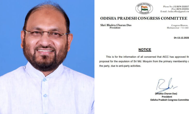 କଂଗ୍ରେସ ରୁ ବହିଷ୍କୃତ ହେଲେ ପୂର୍ବତନ ବିଧାୟକ ମହମ୍ମଦ ମୋକିମ।